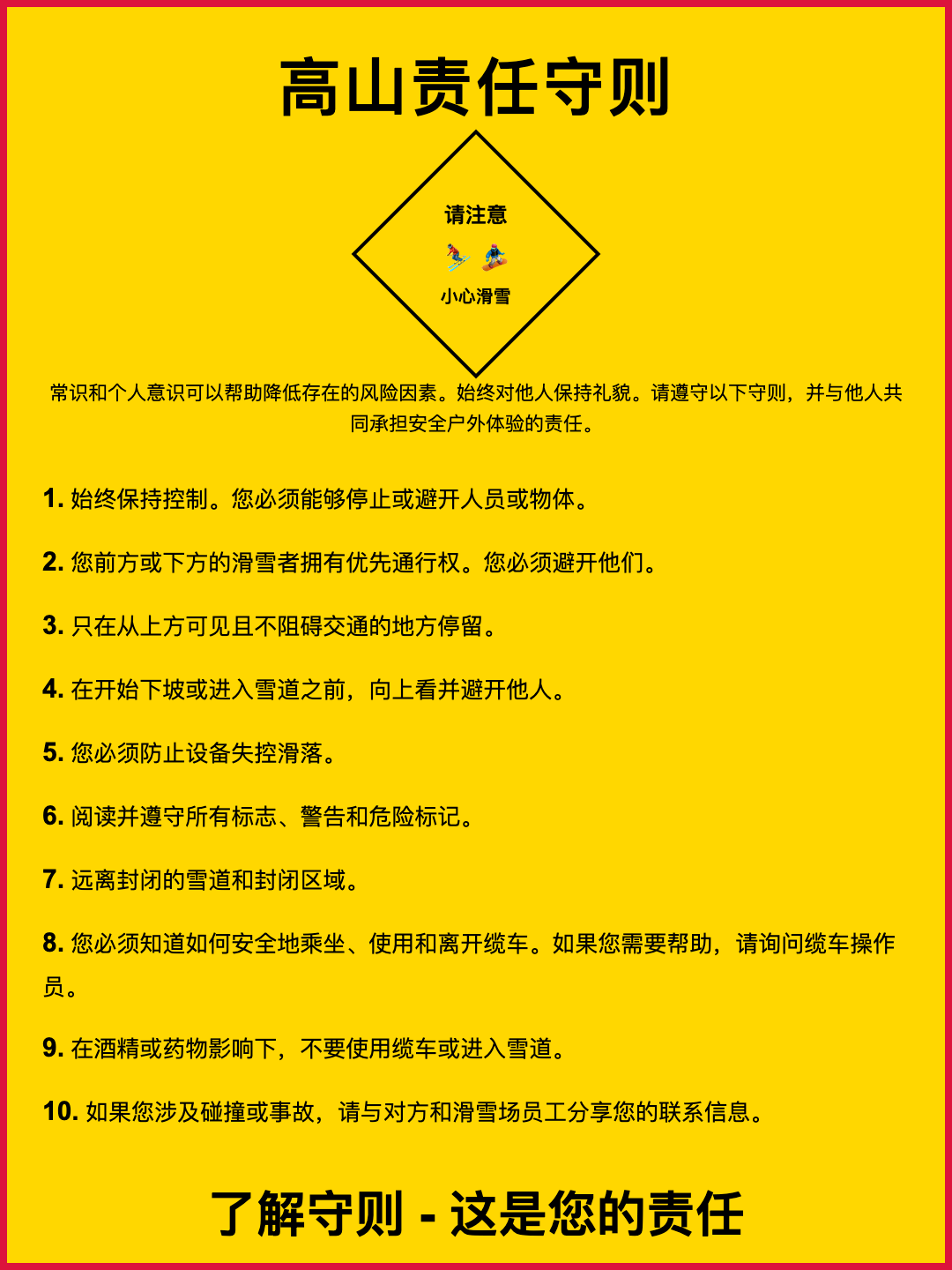 “你必须了解并具备安全上、乘、下缆车的能力。如需协助,请向缆车工作人员求助。”